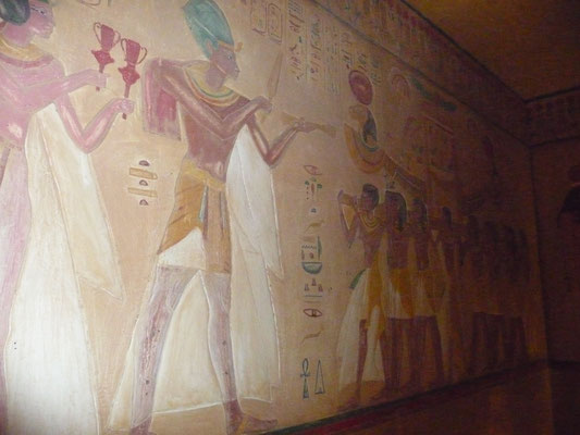 Fue interesante saber que todos los elementos de la exposición han sido realizado por un egipcio que fijándose a lo que era la vida de los faraones ha conseguido elaborar a escala más pequeña todo un mundo sobre ellos; esculturas, pinturas, relieves, etc. De tal forma que el conjunto conforma una visión bastante completa de sus vidas y tumbas funerarias.